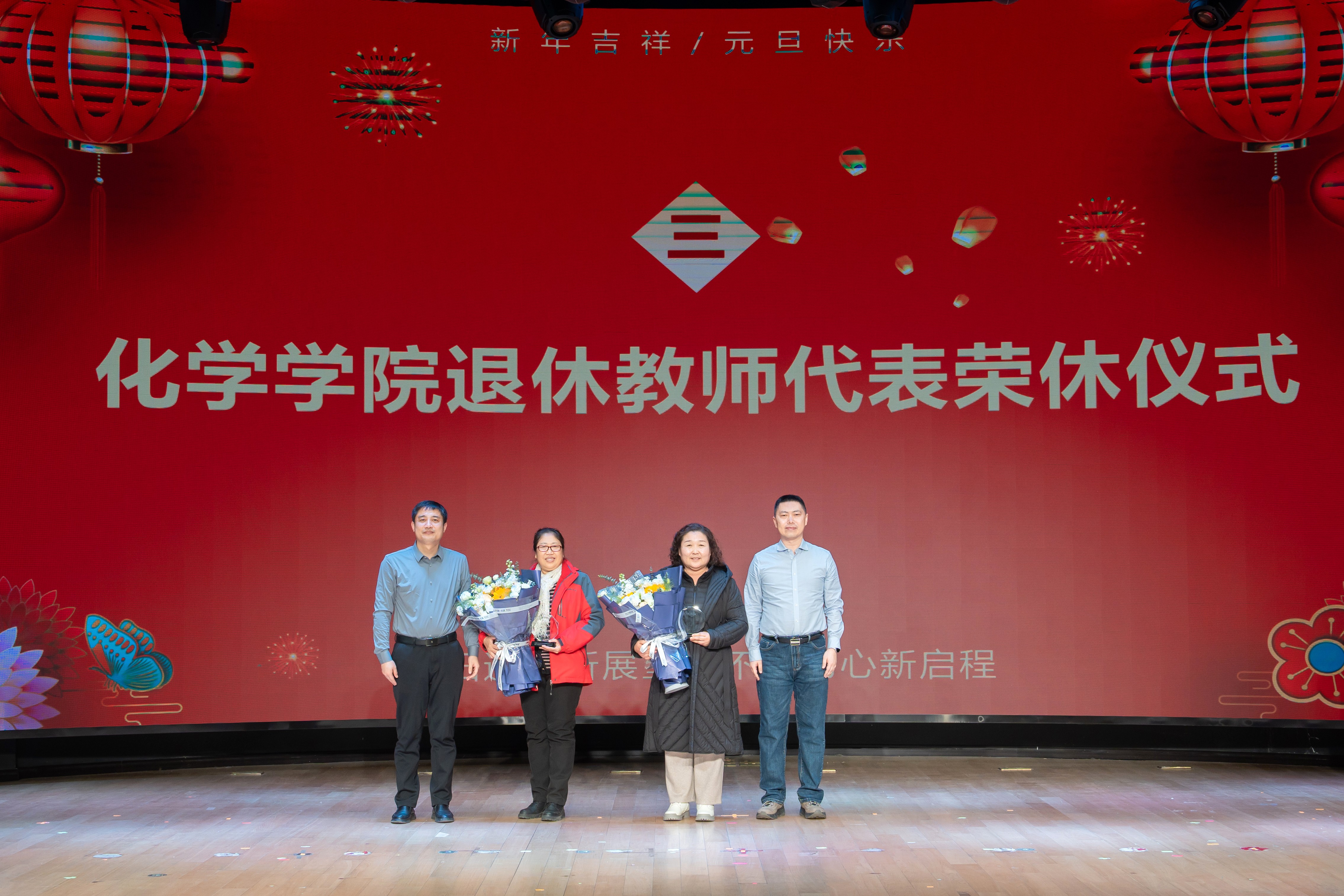 在荣休仪式环节,学院党委书记马本华、院长李乙为退休教师代表杨胥微、吴淑杰两位老师颁发了荣休纪念牌,以此致敬她们从教以来在炸金花在线