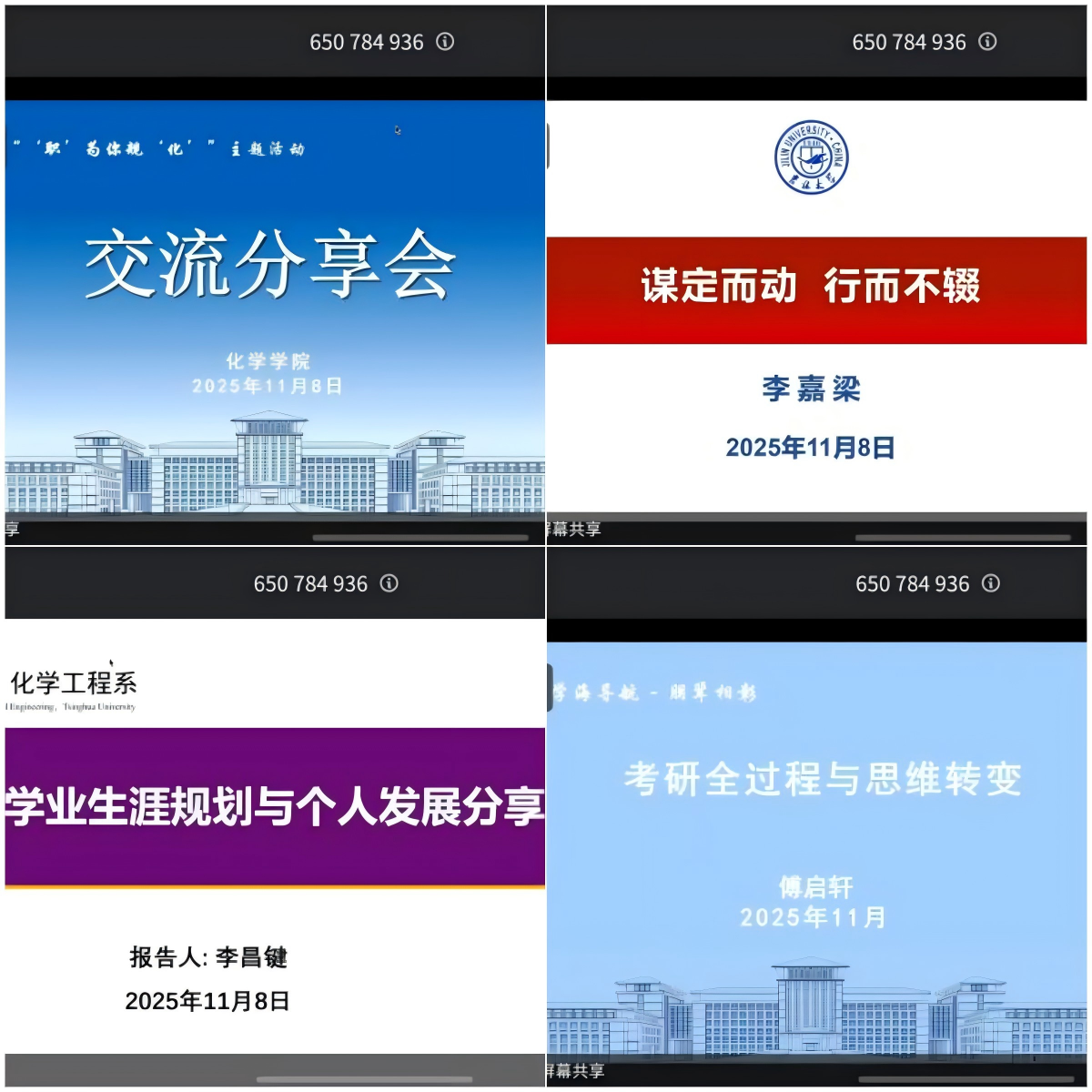 美国普渡大学李嘉梁同学(2016级本科生)以“谋定而动,行而不辍”为题,多维度强调目标定力与持续行动的重要性,鼓励同学们明确方向。清华大学李昌健(2020级本科生)同学分享本科阶段知识积累、科研参与、个人展示等方面的经验与PPT制作技巧,鼓励同学们在学术与项目中提升综合能力。吉林大学傅启轩(2021级本科生)同学则详解考研步骤、压力舒缓等,通过多角度解析,分享了目标拆解、压力舒缓的方法。