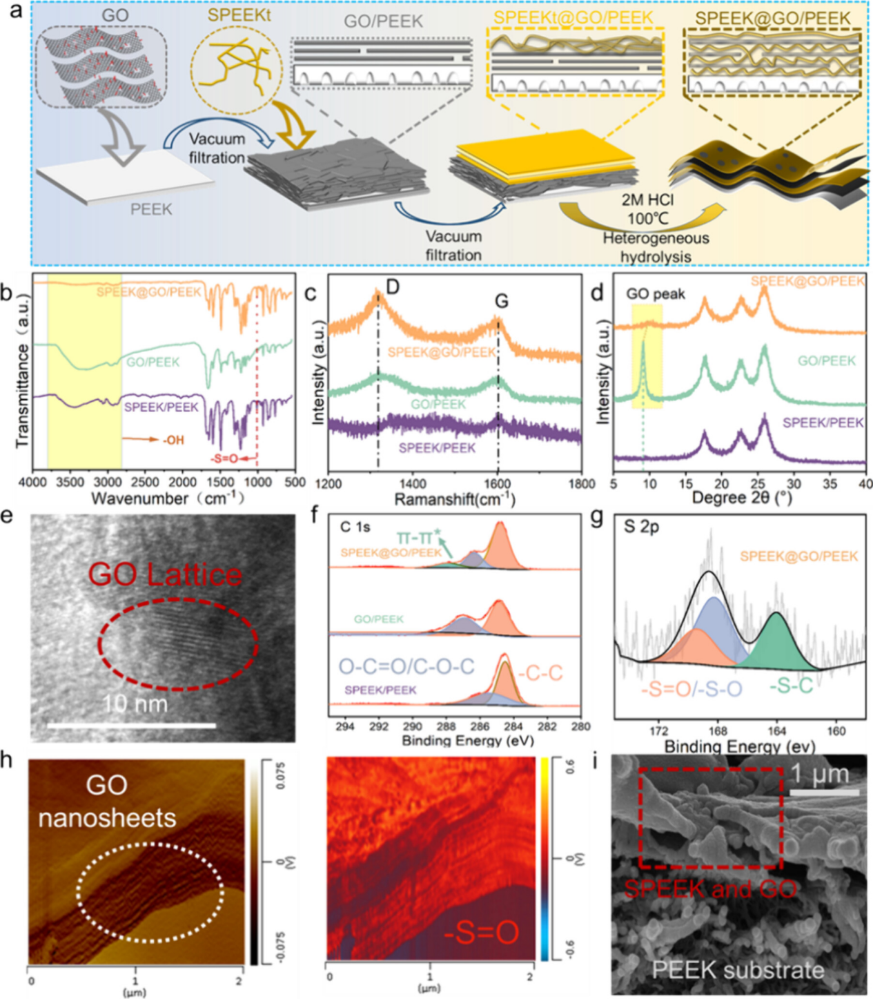 图1 SPEEK@GO/PEEK膜制备的示意图和相关表征