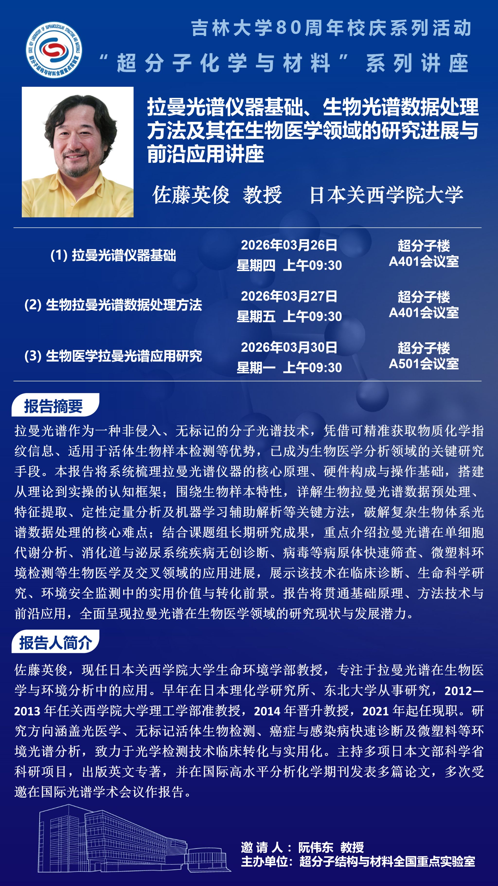拉曼光谱仪器基础、生物光谱数据处理方法及其在生物医学领域的研究进展与前沿应用讲座